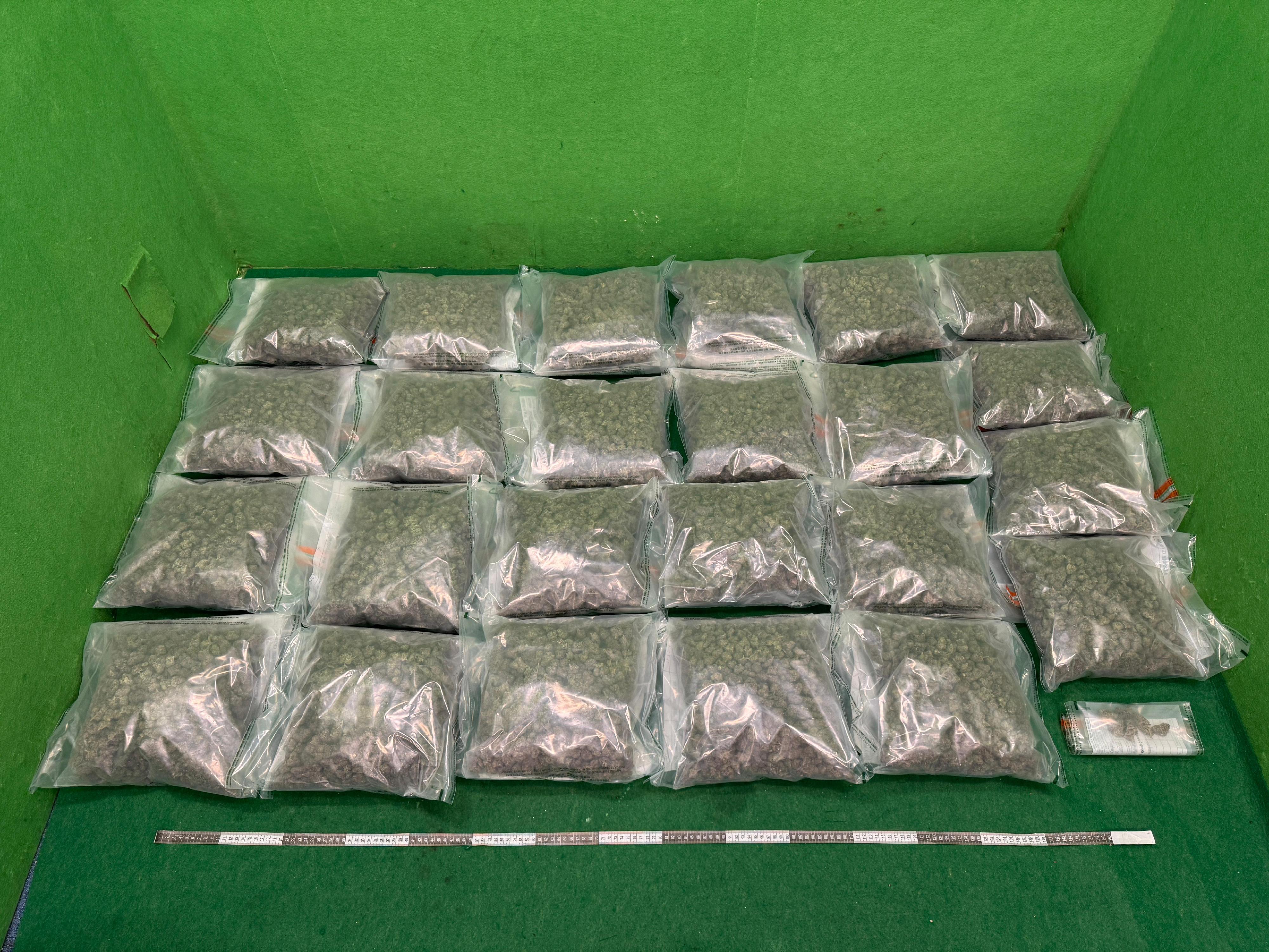 Hong Kong Customs detected two drug trafficking cases involving incoming passengers at Hong Kong International Airport yesterday (August 26) and seized about 24.5 kilograms of suspected cannabis buds with a total estimated market value of about $5.6 million.