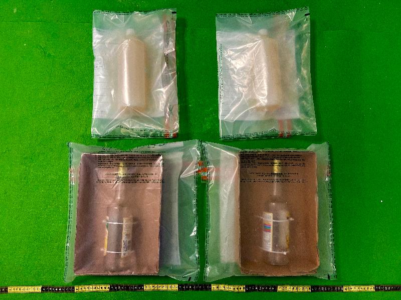 Hong Kong Customs seized about 1.7 kilograms of suspected liquid cocaine with an estimated market value of about $2.6 million at Hong Kong International Airport on February 25. One man was subsequently arrested yesterday (March 3).