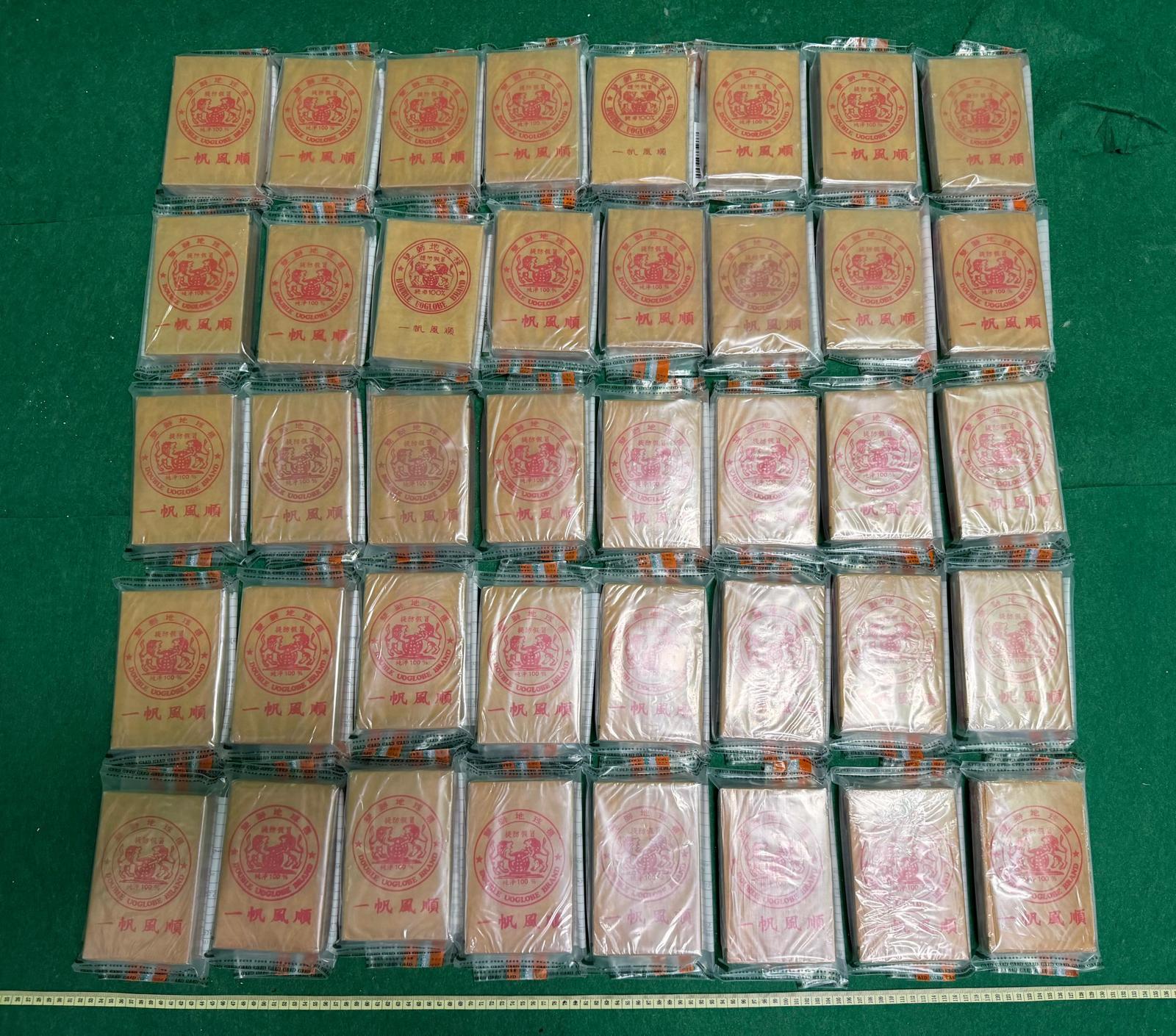 In the second case, a 30-year-old female passenger arrived in Hong Kong from Bangkok, Thailand today. During customs clearance, Customs officers found the batch of suspected heroin, weighing about 14 kilograms with an estimated market value of about $7 million, in her check-in suitcase. The female was subsequently arrested.