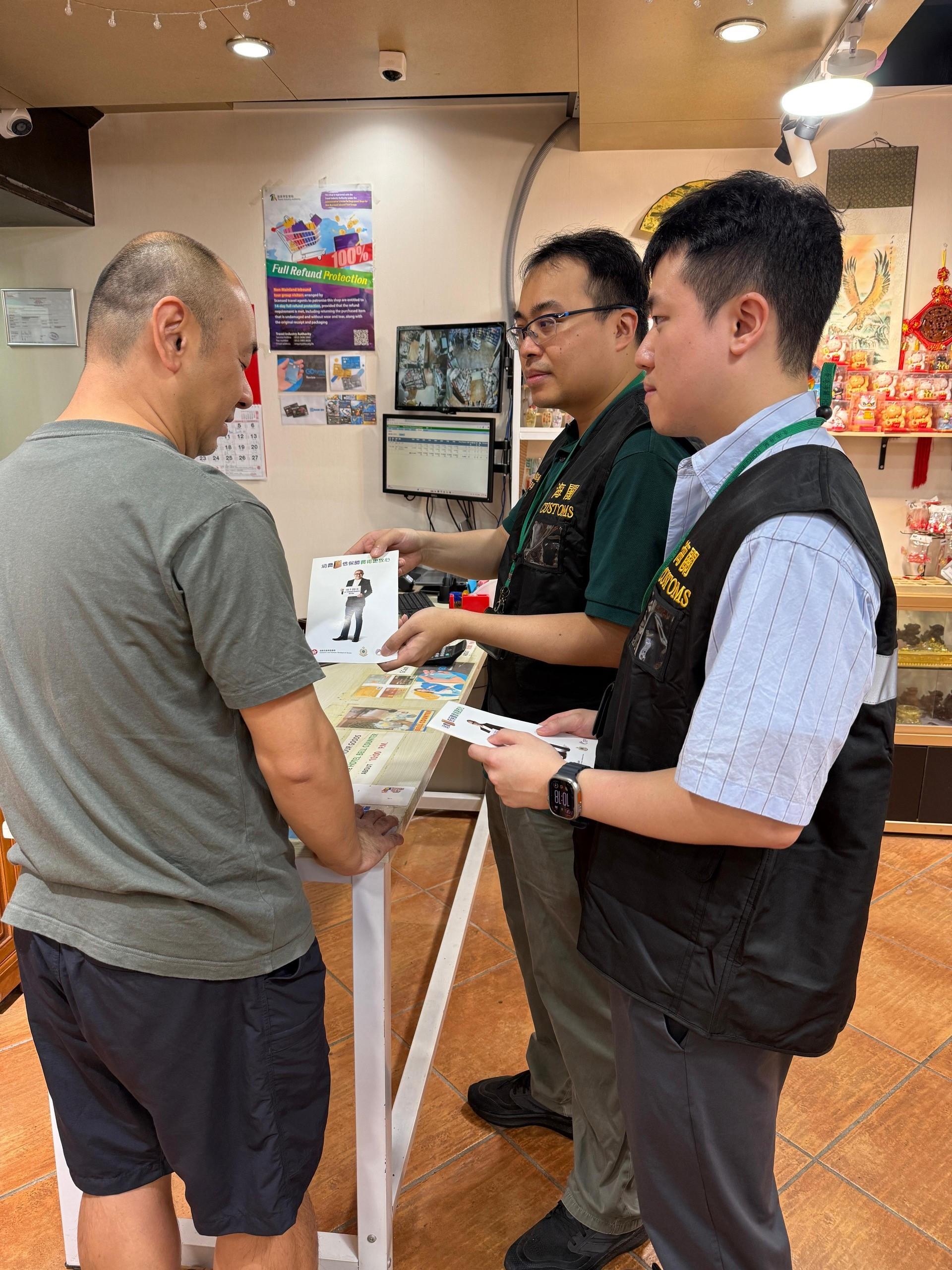 Customs officers will also distribute pamphlets at land boundary control points and popular shopping spots to remind visitors to have a good understanding of a product's specifications and make comparisons before purchasing. They should patronise shops with good reputations. They are also reminded to carefully check the total price and unit price of goods before making payment and to retain transaction receipts and related records, which can serve as supporting documents in case a complaint is lodged in the future. They are additionally reminded to check with the trademark owners or their authorised agents if the authenticity of a product is in doubt.
