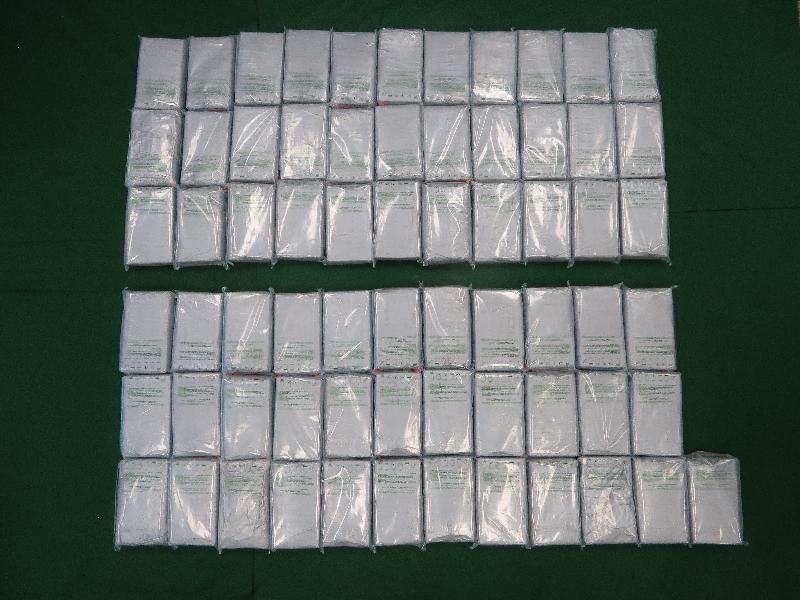 Hong Kong Customs seized about 80 kilograms of suspected cocaine with an estimated market value of about $126 million from a transshipment container at the Kwai Chung Customhouse Cargo Examination Compound on February 23.