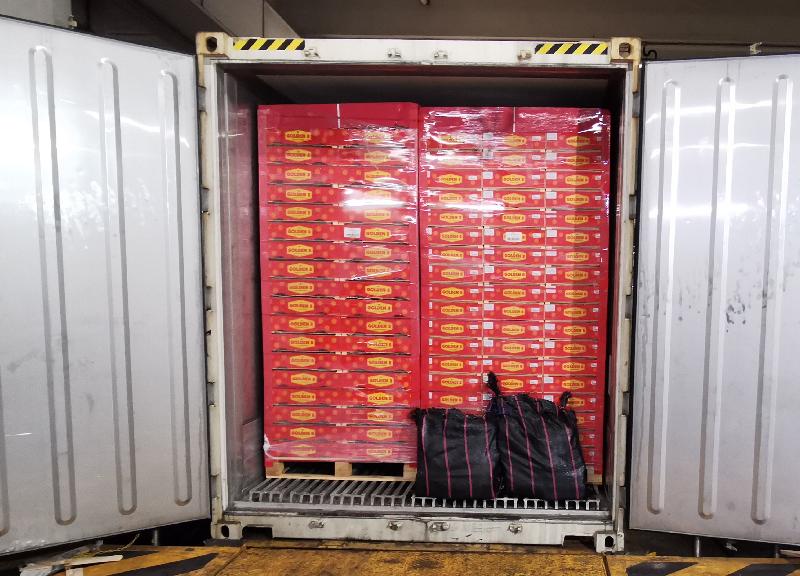 Following intelligence sharing with overseas law enforcement agencies and risk assessment, Customs officers selected a 40-foot container, declared as containing grapes, from Peru heading for the Mainland via Hong Kong for inspection.