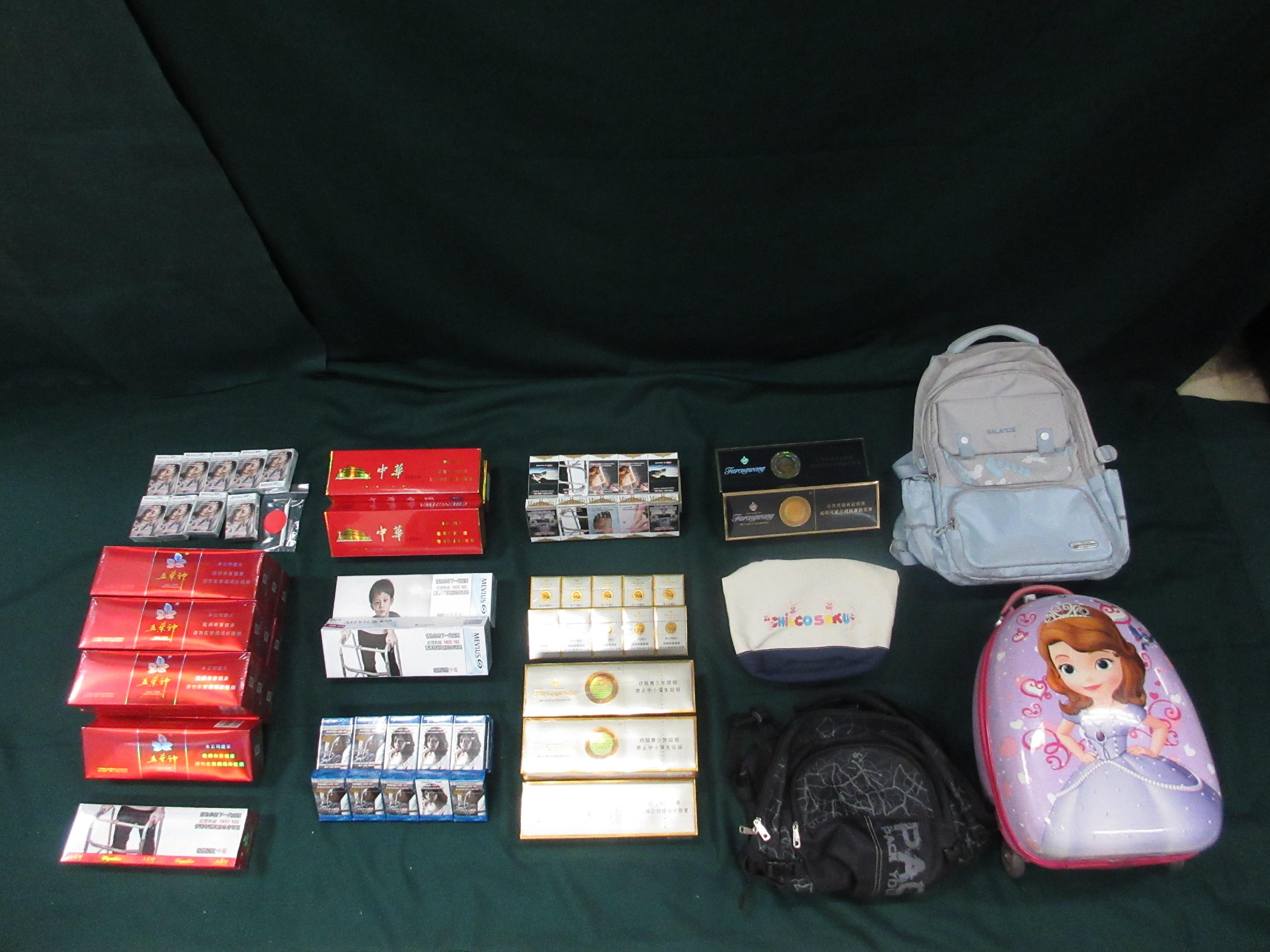 On the same day, Customs officers intercepted a 48-year-old incoming female passenger and her accompanying teenager at the Lo Wu Control Point and seized 5 781 duty-not-paid cigarettes, with an estimated market value of about $24,000 and a duty potential of about $19,000, from their personal baggage. The female passenger was subsequently arrested. She was sentenced to two months' imprisonment and fined $1,500 by the Fanling Magistrates' Courts today.
