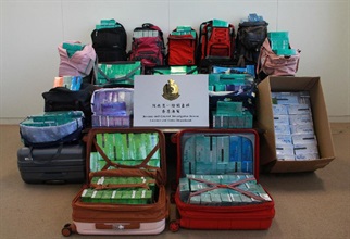 During an anti-illicit cigarette operation in Sheung Shui in the early hours today, Customs officers intercepted two men and four women and found the batch of suspected illicit HNB products in their personal baggage.
