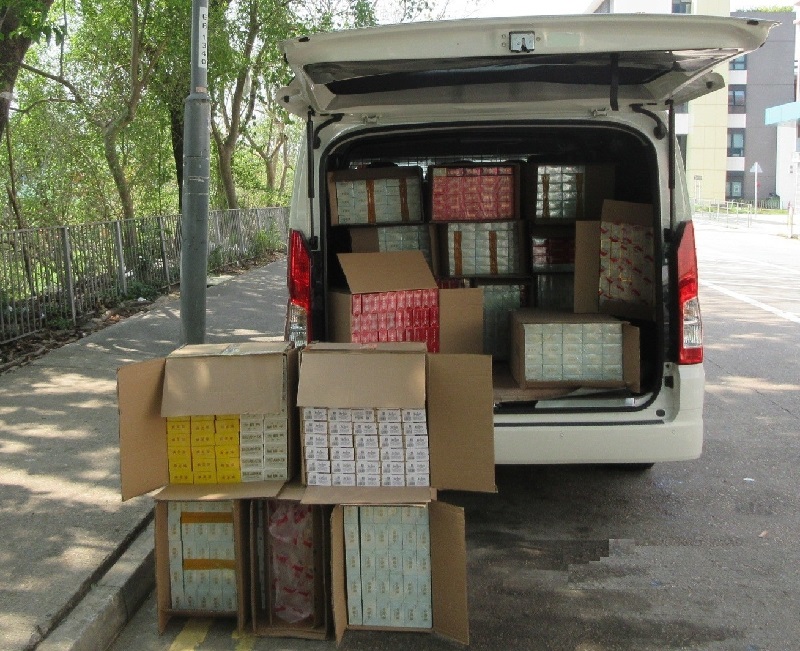 Customs officers conducted an anti-illicit cigarette operation in Sheung Shui this afternoon and intercepted a light goods vehicle suspected of distributing illicit cigarettes. The batch of suspected illicit cigarettes was seized on board the vehicle.