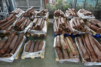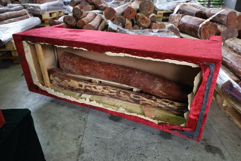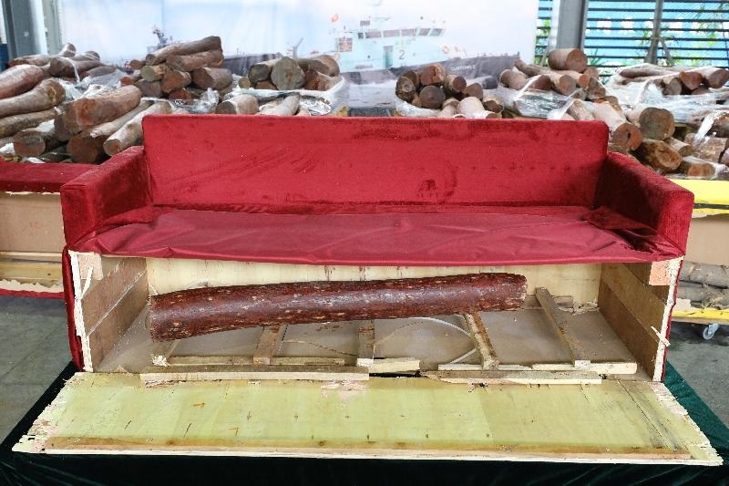 Hong Kong Customs seized about 7 400 kilograms of suspected smuggled red sandalwood with an estimated market value of about $5.5 million from two containers at the Kwai Chung Customhouse Cargo Examination Compound on April 6. This is the first time Customs has detected the smuggling of wood logs concealed inside furniture.