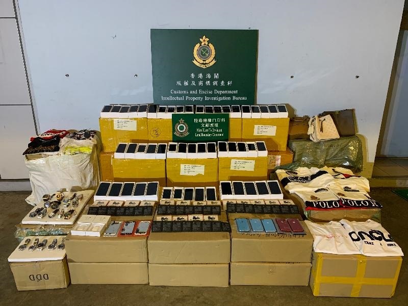 ​Hong Kong Customs seized a total of about 49 500 items of suspected counterfeit goods with an estimated market value of about $8.4 million in total at Man Kam To Control Point, Kwun Tong and Fanling on April 9 and yesterday (April 14).