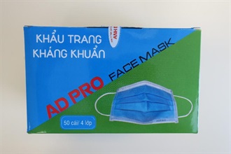 The four types of surgical masks were packed in boxes of 50 pieces each, with the selling prices ranging from $150 to $280. All four samples had no manufacturing place labels. It is believed that they came from Southeast and West Asian countries according to initial investigation.