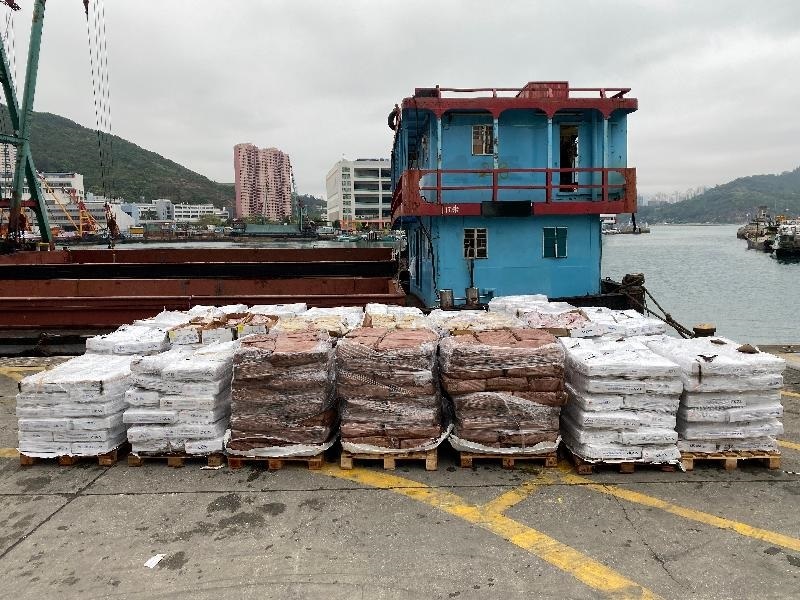 ​Hong Kong Customs yesterday (April 22) conducted an anti-smuggling operation and detected a suspected smuggling case using speedboats and barges in the waters off Hong Kong International Airport. About 162 tonnes of suspected smuggled frozen meat with an estimated market value of about $6.5 million were seized and 15 persons were arrested. This is the largest frozen meat smuggling case detected by Customs this year.