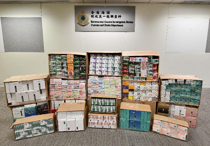 Hong Kong Customs and the Department of Health (DH) yesterday (April 28) conducted a joint operation codenamed "Whirlwind" in Wan Chai, Kwun Tong, Mong Kok, Sham Shui Po, Tsuen Wan and Yuen Long to combat illegal sale of nicotine-containing oil for electronic cigarettes and seized about 50 000 pieces of suspected nicotine-containing oil for electronic cigarettes with an estimated market value of about 2.38 million.