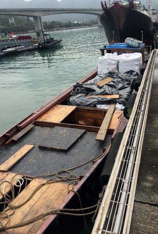Customs officers and Marine Police officers spotted a suspicious fishing vessel and a suspicious speedboat in the waters off Lung Kwu Chau yesterday. Officers took immediate action when the two vessels intended to leave Hong Kong waters. The batch of suspected smuggled frozen meat was seized on board the fishing vessel and two men aged 56 and 46 were arrested.