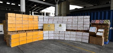 Through risk assessment, Customs officers yesterday selected a seaborne inbound container declared to contain instant noodles arriving in Hong Kong from Vietnam for inspection. About 2.2 million suspected illicit cigarettes were found inside the container. A 48-year-old woman and a 30-year-old man suspected to be connected with the case were arrested.