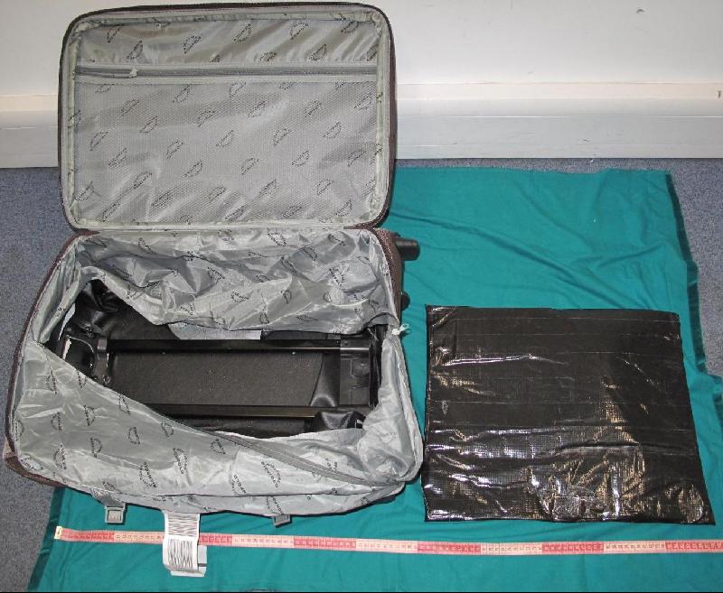 Customs officers today (February 25) intercepted a female passenger in transit from Johannesburg, South Africa to Samui, Thailand at the transit area of the Hong Kong International Airport and seized about 2.23 kilogrammes of methamphetamine (Ice). The drugs were concealed inside the false compartment of her suitcase and had an estimated market value of about $1.7 million.