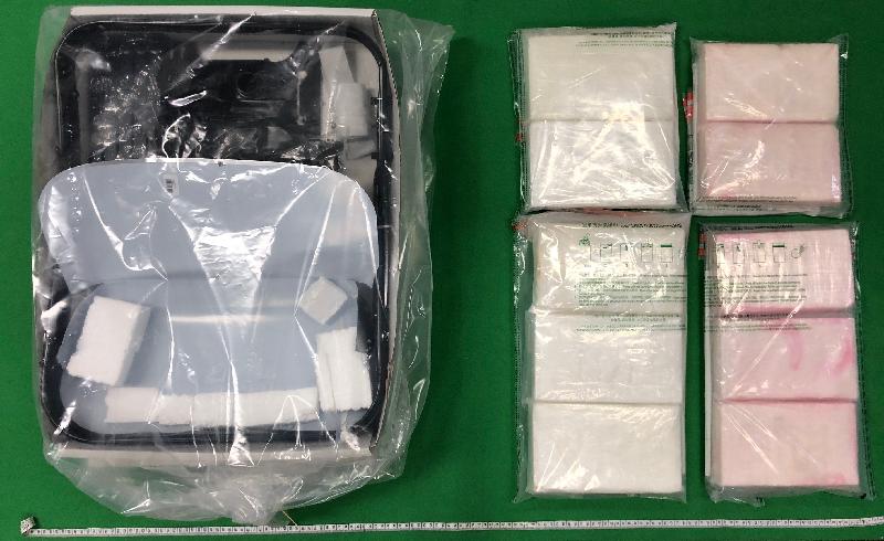 Customs officers inspected an air consignment that had arrived in Hong Kong from the Netherlands on that day and found the batch of suspected cocaine concealed inside the compartments of 10 unassembled office chairs.