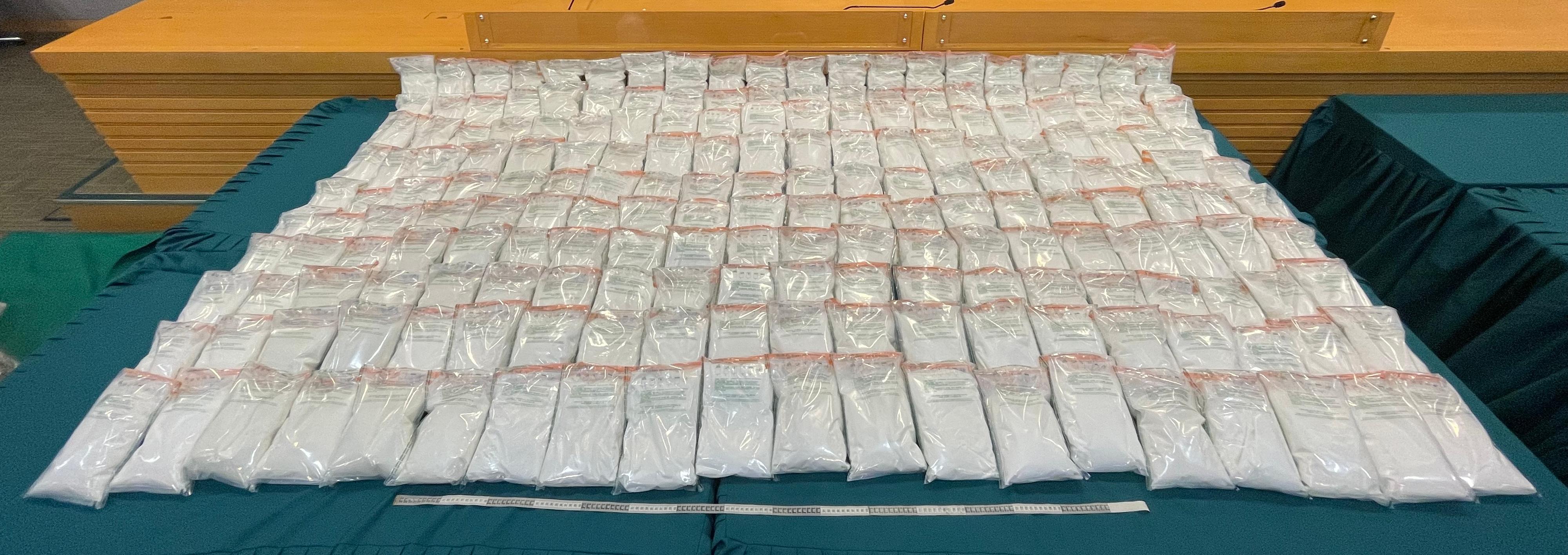 Hong Kong Customs on May 6 and yesterday (May 16) seized about 200 kilograms of suspected ketamine and about 350 grams of suspected heroin at Hong Kong International Airport (HKIA) and in Sham Shui Po respectively. The total estimated market value was over $86 million. Five men suspected to be in connection with the case were arrested.