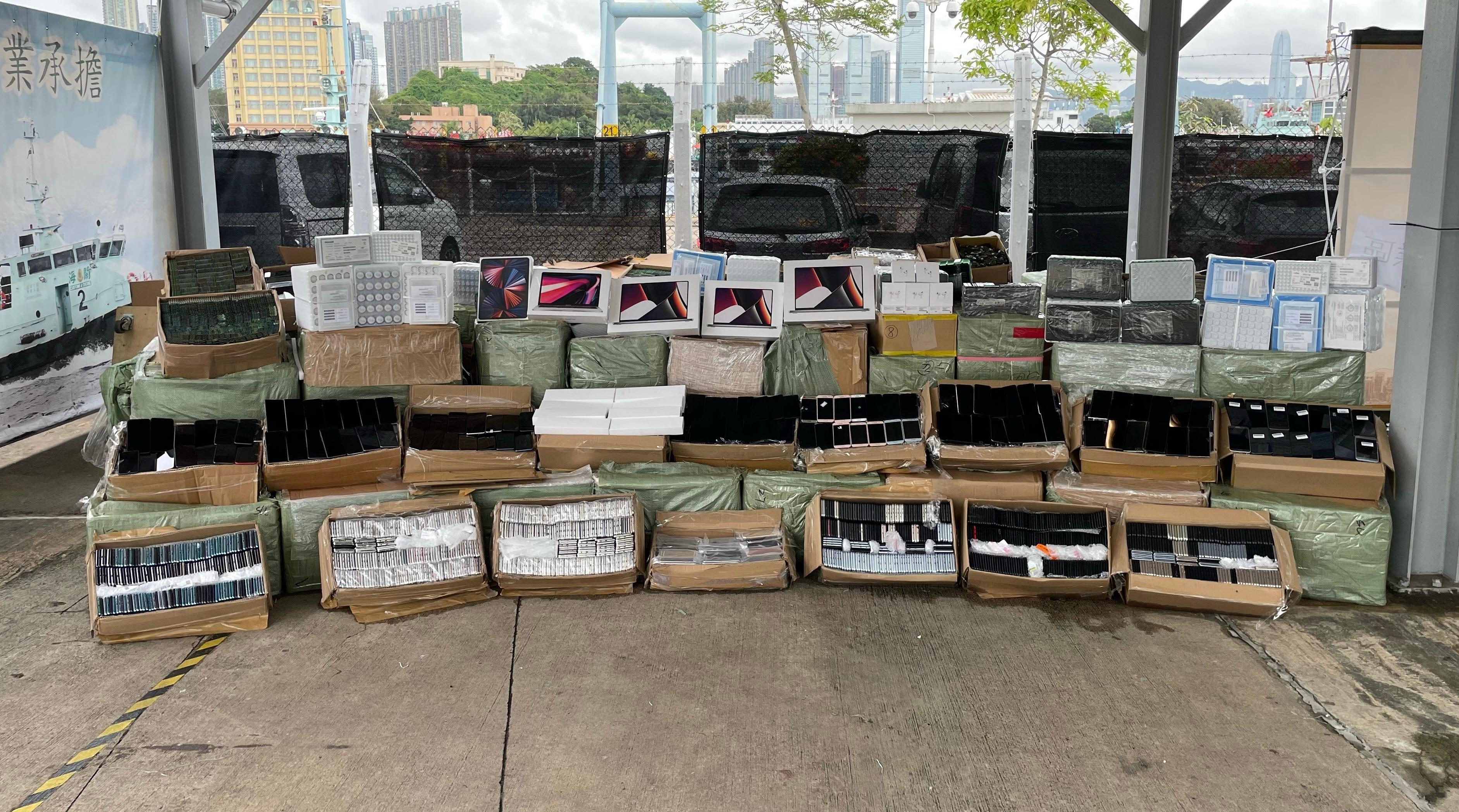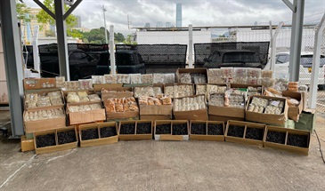 Hong Kong Customs yesterday (May 30) mounted an anti-smuggling operation in the western waters of Hong Kong and detected a case suspected of using a river trade vessel's structural space to conceal smuggled goods in the waters off Black Point. A large batch of suspected smuggled goods with a total estimated market value of about $50 million was seized, including electronic products, high-value food, cosmetic products and cigars.