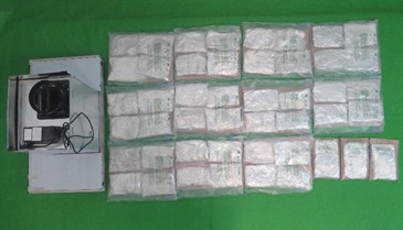 Customs officers at Lok Ma Chau Control Point on that day inspected four express parcels, which arrived in Hong Kong from Malaysia via Shenzhen, declared as containing range hoods and found the batch of suspected heroin concealing inside four range hoods.