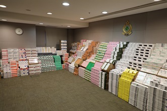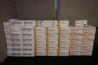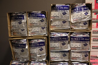 Through intelligence analysis, Customs officers on that day inspected a 20-foot container, declared as carrying milk powder, arriving in Hong Kong from Japan. Upon examination, Customs officers seized the batch of suspected illegally imported controlled medicines inside the container.