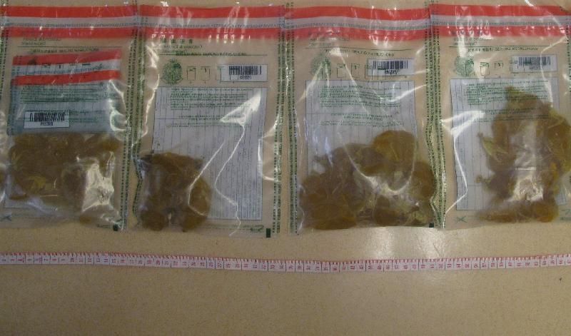 The man arrived from Bogota, Colombia. Customs officers at the Airport intercepted him for baggage examination and personal search. He was escorted to hospital for medical check-up and confirmed by doctor to have foreign objects concealed in his body cavity. Subsequently he egested the cocaine seizure. He was charged with one count of trafficking in a dangerous drug and will appear at the Tsuen Wan Magistrates' Court tomorrow (April 25).