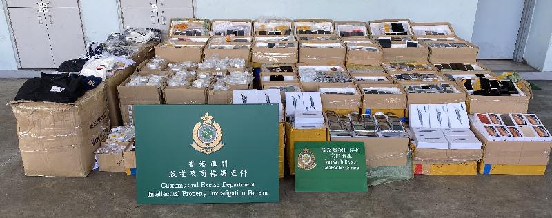 Through risk assessment, Customs officers intercepted an incoming truck at Man Kam To Control Point on that day. The batch of suspected counterfeit goods, including mobile phones and accessories, clothing and footwear, was found inside the cargo compartment. The 44-year-old male driver was arrested.