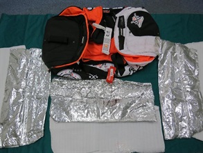Hong Kong Customs yesterday (April 19) foiled a drug trafficking attempt by a passenger at Hong Kong International Airport and seized about 4.6 kilogrammes of cocaine soaked in cotton, with an estimated street value of about $5.2 million. A 46-year-old man was arrested in the operation.