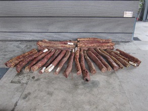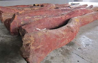 Customs officers and the Marine Police this morning spotted a river trade cargo vessel off Lung Kwu Tan, Tuen Mun. Officers intercepted the vessel for a search and found the suspected red sandalwood. The 63-year-old male coxswain was arrested. The case is still under investigation.