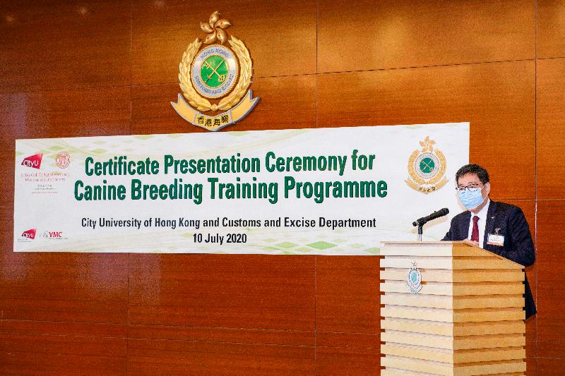 The Commissioner of Customs and Excise, Mr Hermes Tang, today (July 10) officiated at the certificate presentation ceremony of the Canine Breeding Training Programme at the Customs Headquarters Building where 10 officers from the Customs Canine Force were awarded certificates at the ceremony upon successful completion of the programme.