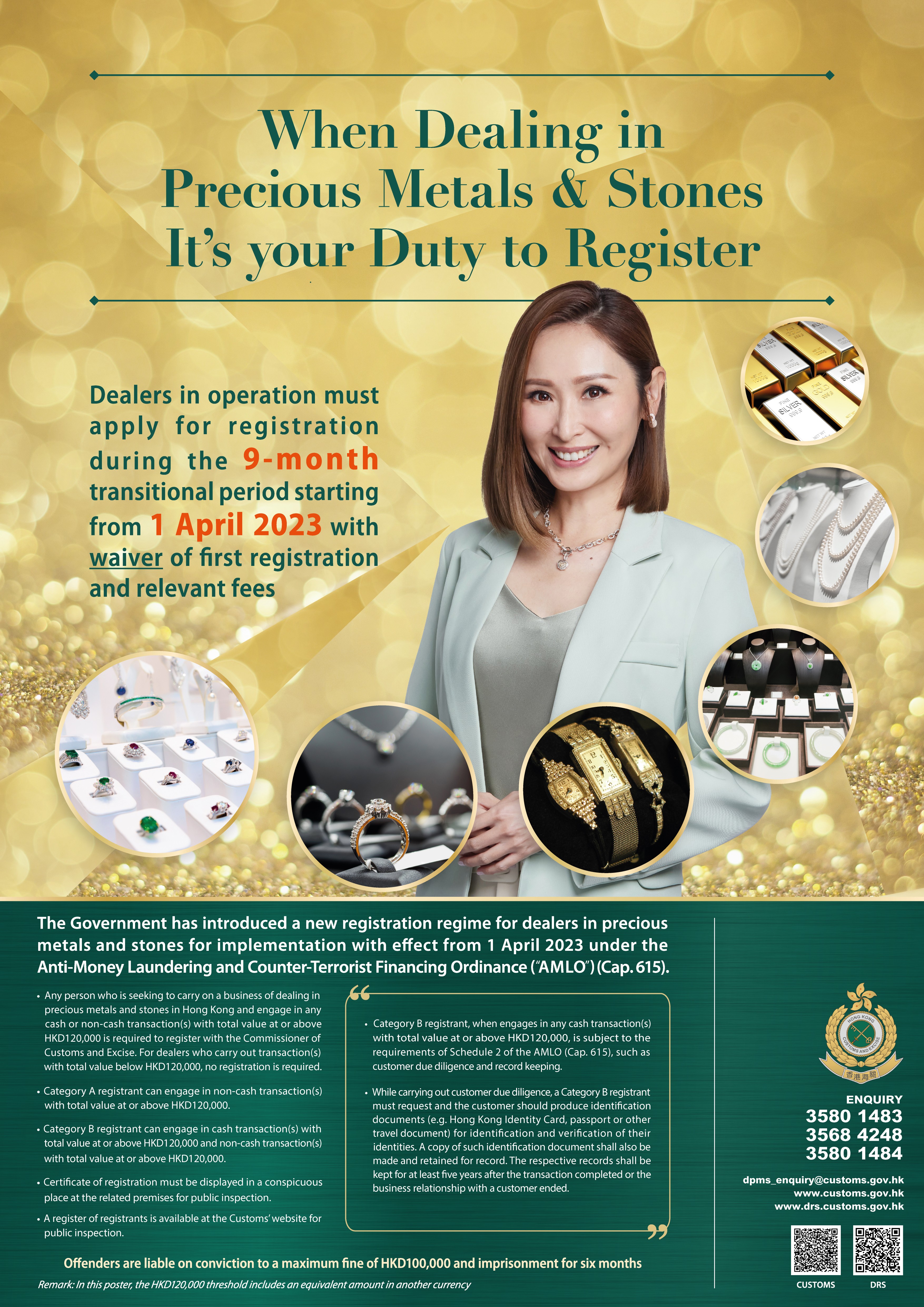 Poster on Dealers in Precious Metals and Stones Registration Regime (Implemented from 1 April 2023)