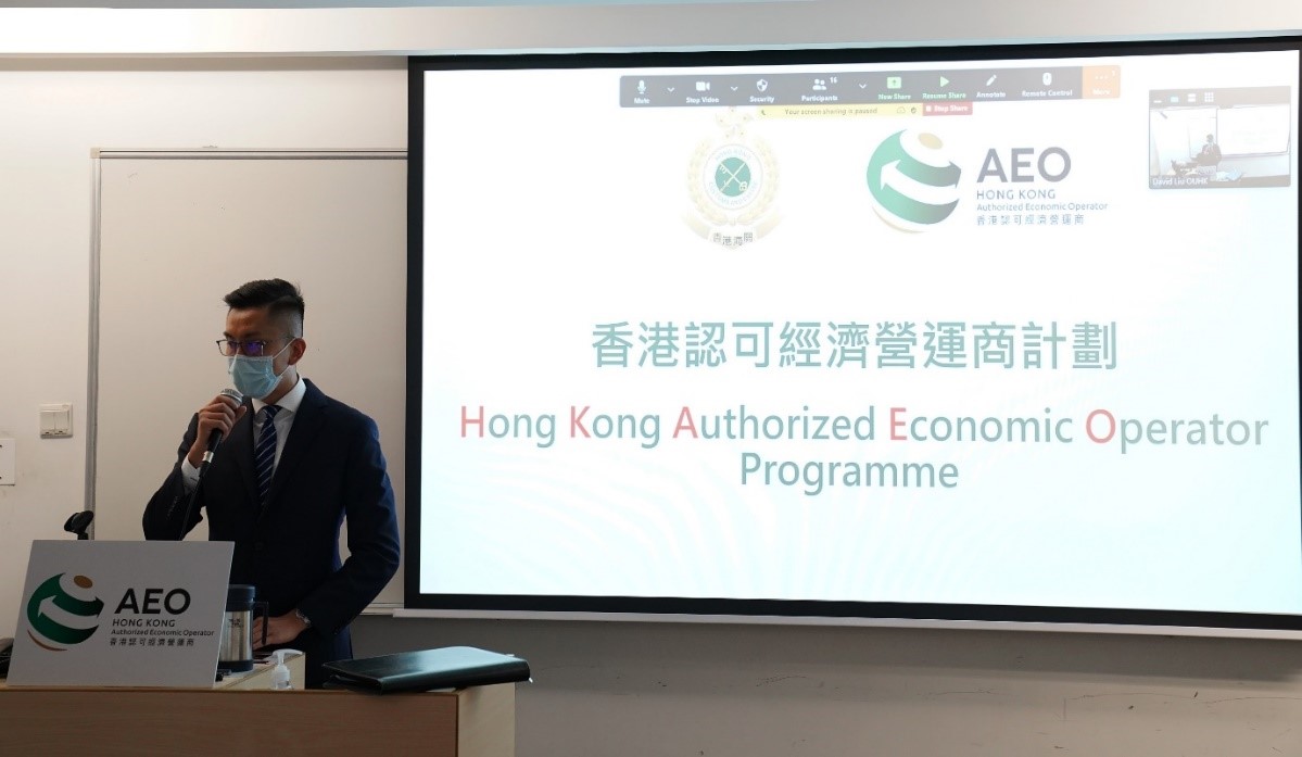 Officers from the Office of Supply Chain Security Management (OSCS) of the Customs and Excise Department (C&ED) delivered a talk on the Hong Kong Authorized Economic Operator (HKAEO) Programme today (17 October 2020) at The Open University of Hong Kong (OUHK).