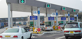the southbound traffic, four similar kiosks for processing