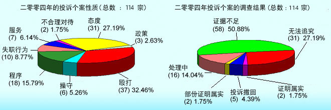 10. 以下图表及数字显示在二零零三年及二零零四年接获投诉个案的性质及其后的调查结果。 |