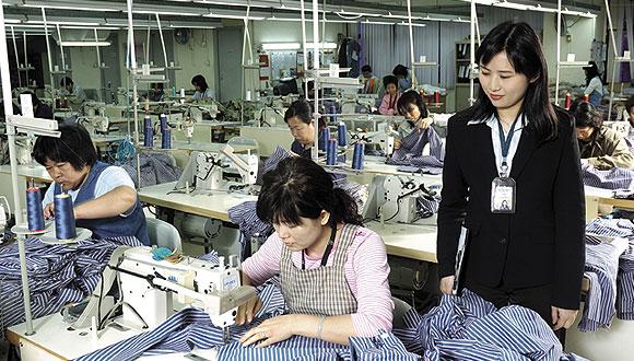 officer inspecting a garment factory. |