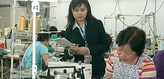 | 一名海关人员正巡视一间制衣厂。 |
