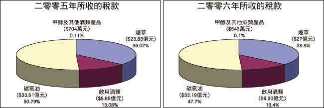 二零零六年,海關偵破35 835宗個案,檢獲7 874萬支香煙,拘捕10 702人。檢獲的私煙總值1.1932億元,應課稅值超逾6 331萬元。