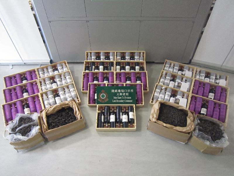 香港海关昨日(七月十二日)在文锦渡管制站检获一百二十三支怀疑走私红酒及约四十四公斤怀疑走私干海参,估计市值约七十万元。
