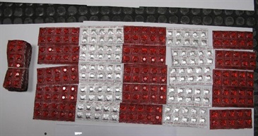 昨日下午约四时,海关人员截查该名从澳门抵港的十九岁外籍男子,发现他所携带一件行李内的五个食品盒里共藏有约一万五千粒硝甲西泮。