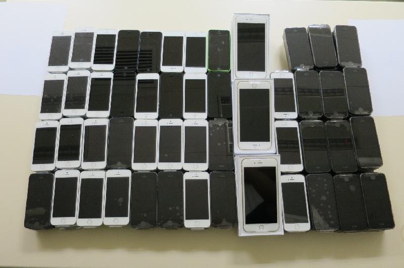 香港海关昨日(九月二十四日)在深圳湾管制站侦破一宗涉嫌利用七人私家车走私智能电话的案件,检获238部全新智能电话,当中包括175部iPhone 5s、60部iPhone 5及3部最新型号的iPhone 6 Plus,总值约100万元。