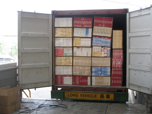 海关今日(十月廿七日)侦破一宗陆路跨境走私香烟案件,在落马洲管制站一辆入境货柜车上检获 146箱合共约174万支未完税香烟,市值约332 万元,应课税值约210 万元。行动中,海关拘捕一名男子,并扣查该辆货柜车。