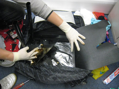 海关人员昨晚在机场入境大堂截查该名女子,在其行李ʒ的底部夹层内搜出共重约1.3公斤的海洛英。