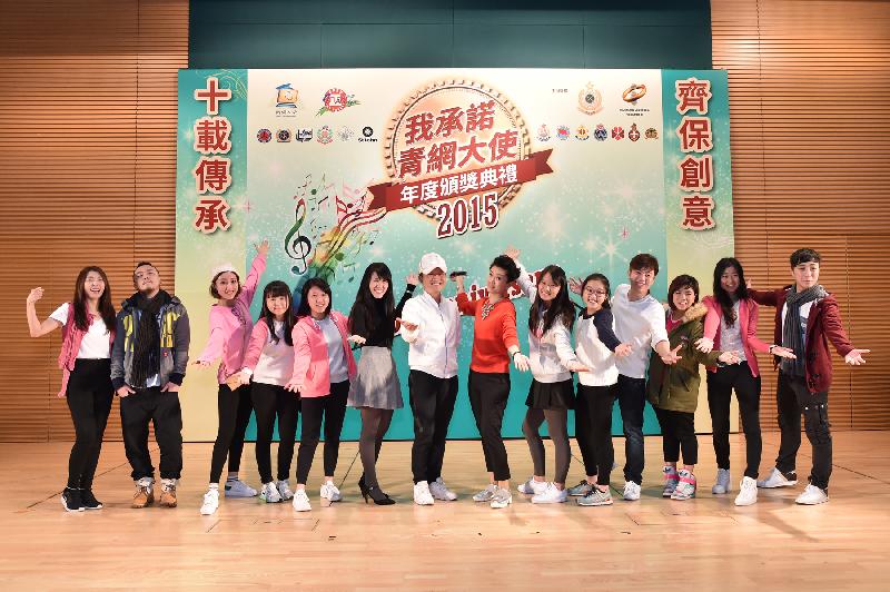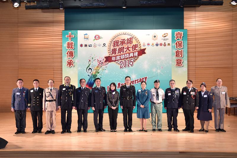 香港海关及知识产权署合办的「我承诺.青网大使年度颁奖典礼2015」今日(十二月十九日)在海关大楼举行。这项香港海关及知识产权署第十年合办的活动致力提升市民尊重和保护知识产权的意识,并向青少年树立打击侵权的模范。