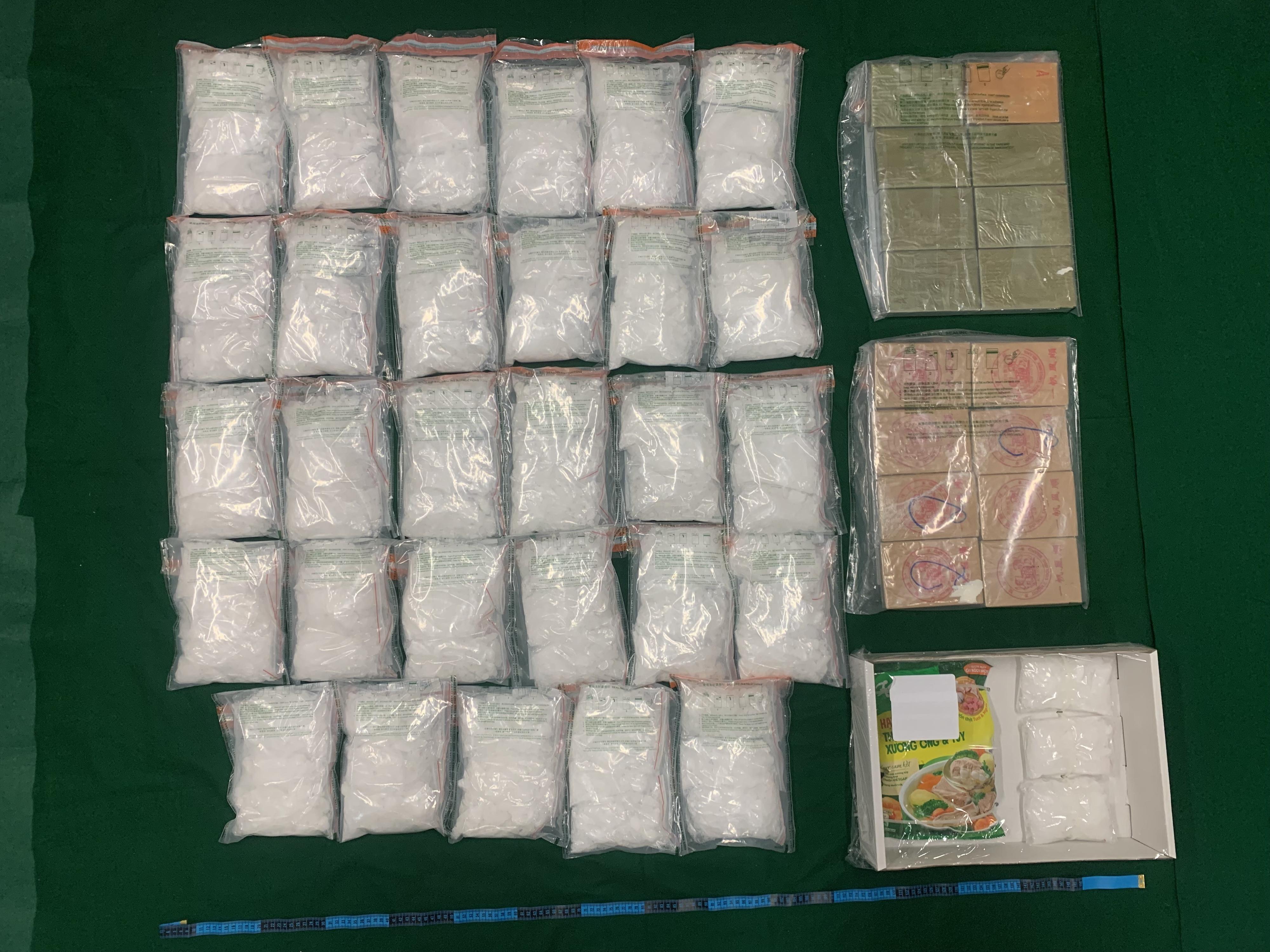 海关当日透过风险评估,在葵涌海关大楼验货场检查一个经海路从越南到港、报称载有食品和电子零件等货物的合并货柜。经检验后,海关人员发现货柜内有四批不同的货物,而其中一批藏有约十九公斤怀疑冰毒和约六公斤怀疑海洛英,以调味包和护肤品的包装作为掩饰,把毒品收藏在包装袋和包装盒内。