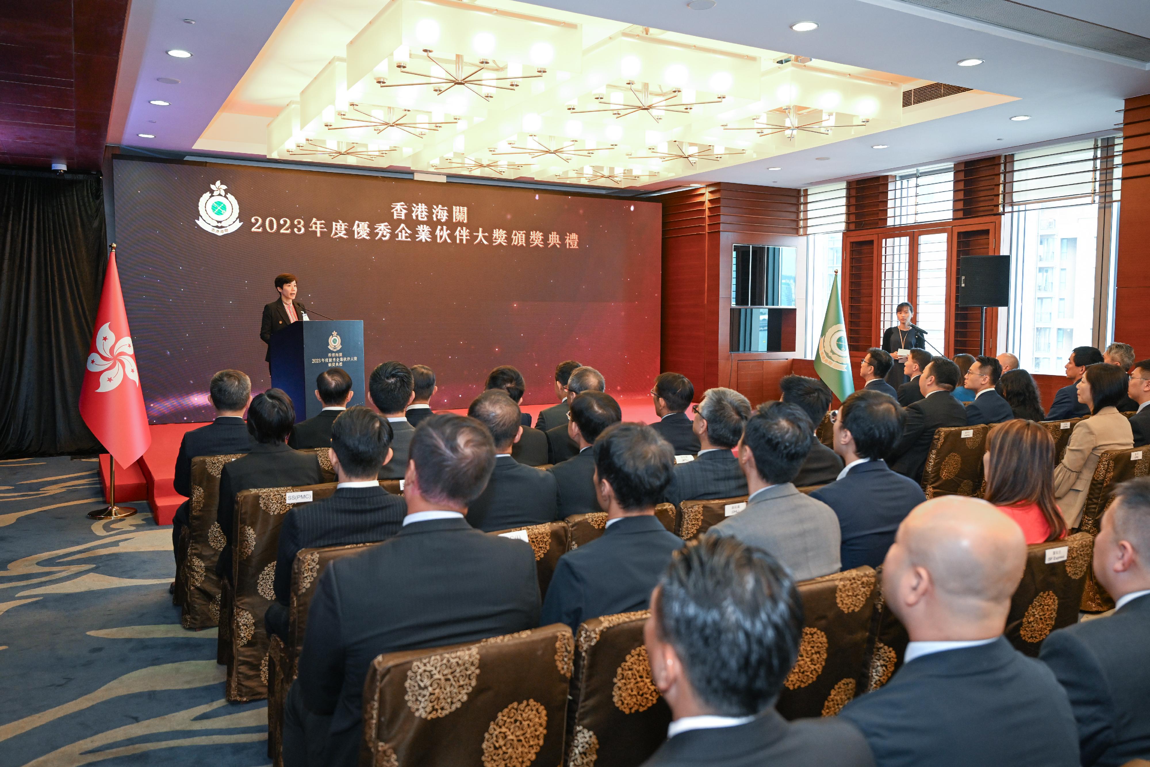 香港海关今日(十月二十六日)在海关总部大楼举行二○二三年度优秀企业伙伴大奖颁奖典礼,向十三位物流业界的持份者颁发奖状,表扬他们对海关的积极合作和作出的贡献。