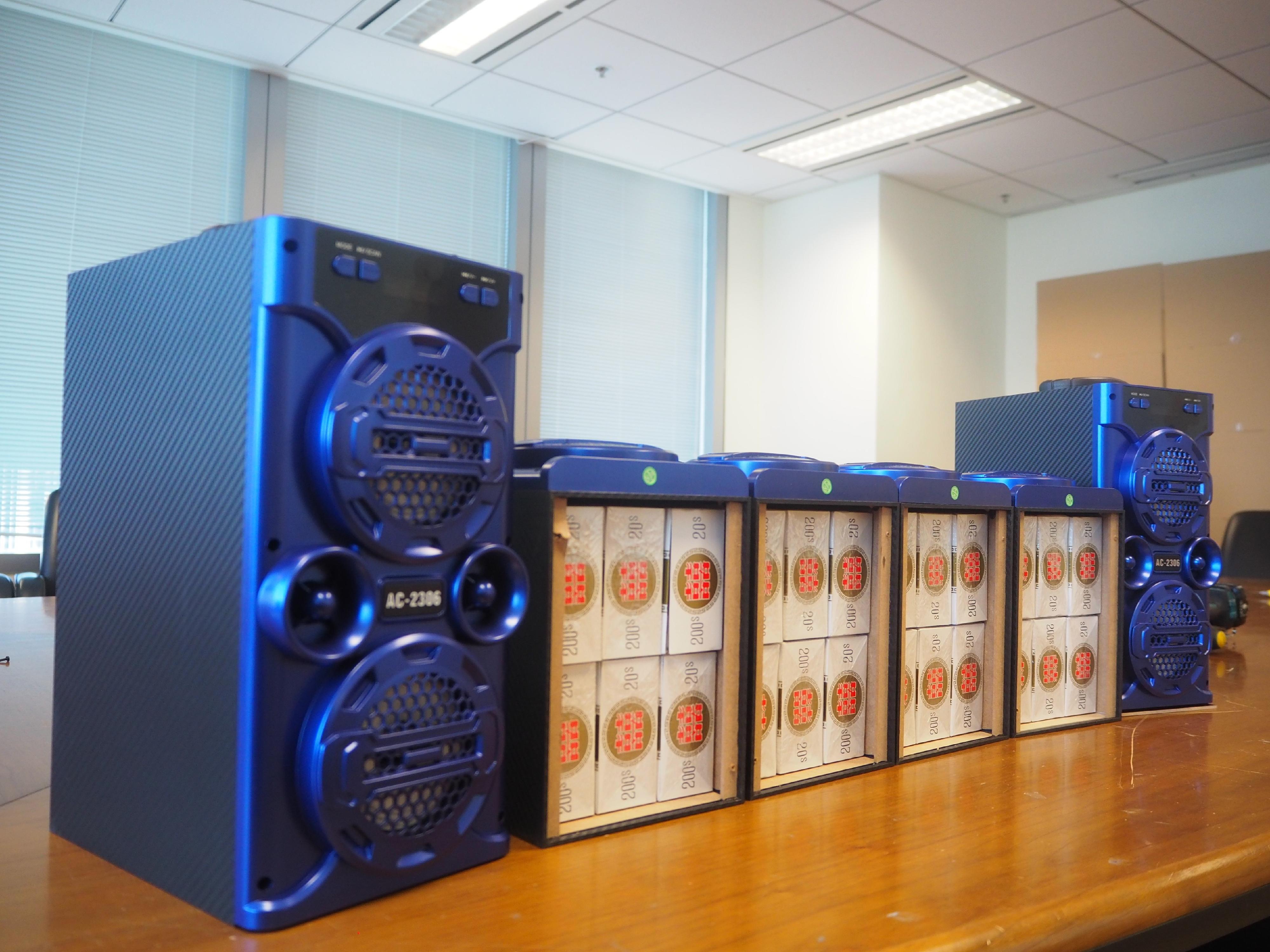 海关相信该单位为私烟集团的一个私烟包装工场,不法分子透过被掏空内部结构的音响喇叭作掩饰,将其改装成收藏私烟的容器,企图增加海关的执法难度。初步调查发现,涉案的私烟正准备于圣诞节前夕偷运到外地。海关会继续追查私烟的来源,不排除会有更多人被捕。