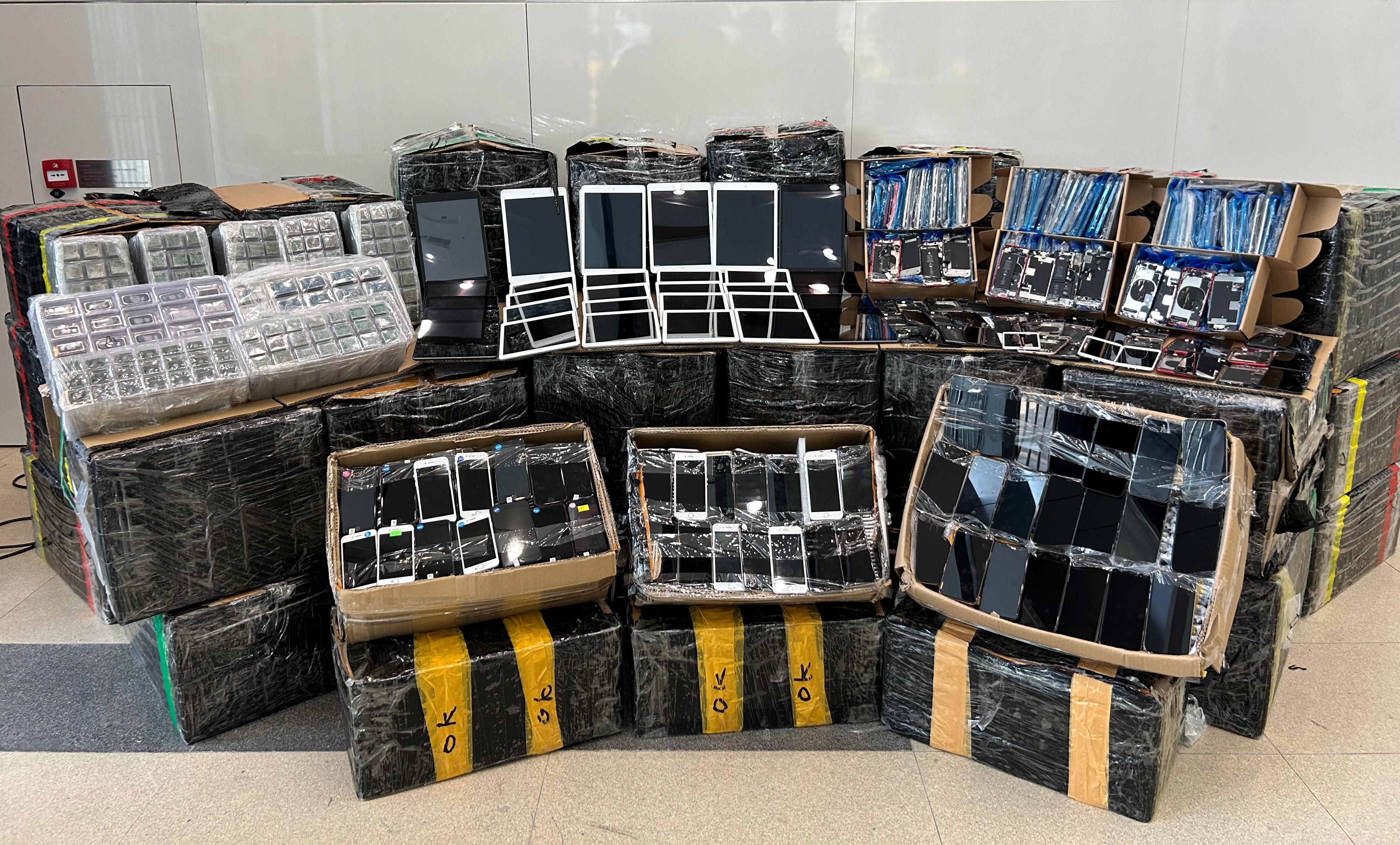 海关人员随后在岸边和在该辆轻型货车内,检获一批怀疑走私货物,包括手提电话、电话零件、平板电脑及中央处理器。