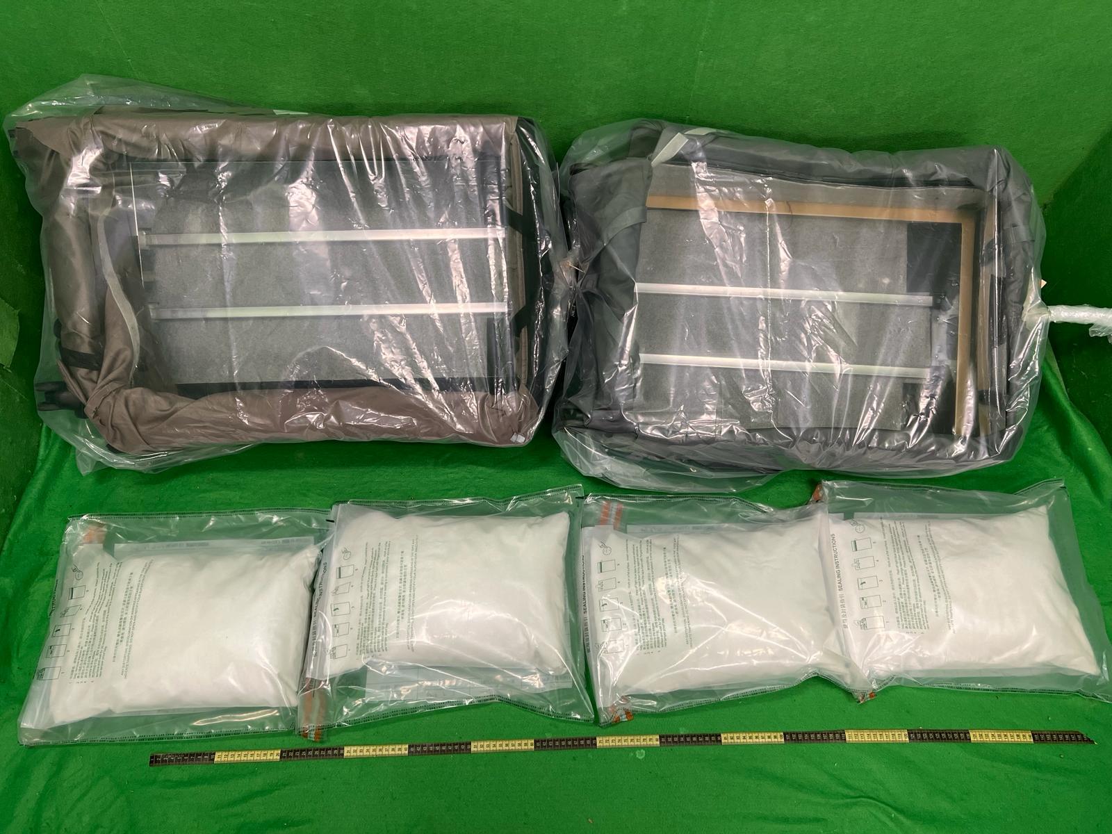 香港海关昨日(二月六日)在香港国际机场侦破一宗行李藏毒的贩毒案件,检获约二十一公斤怀疑氯胺酮,估计市值共约一千三百万元。