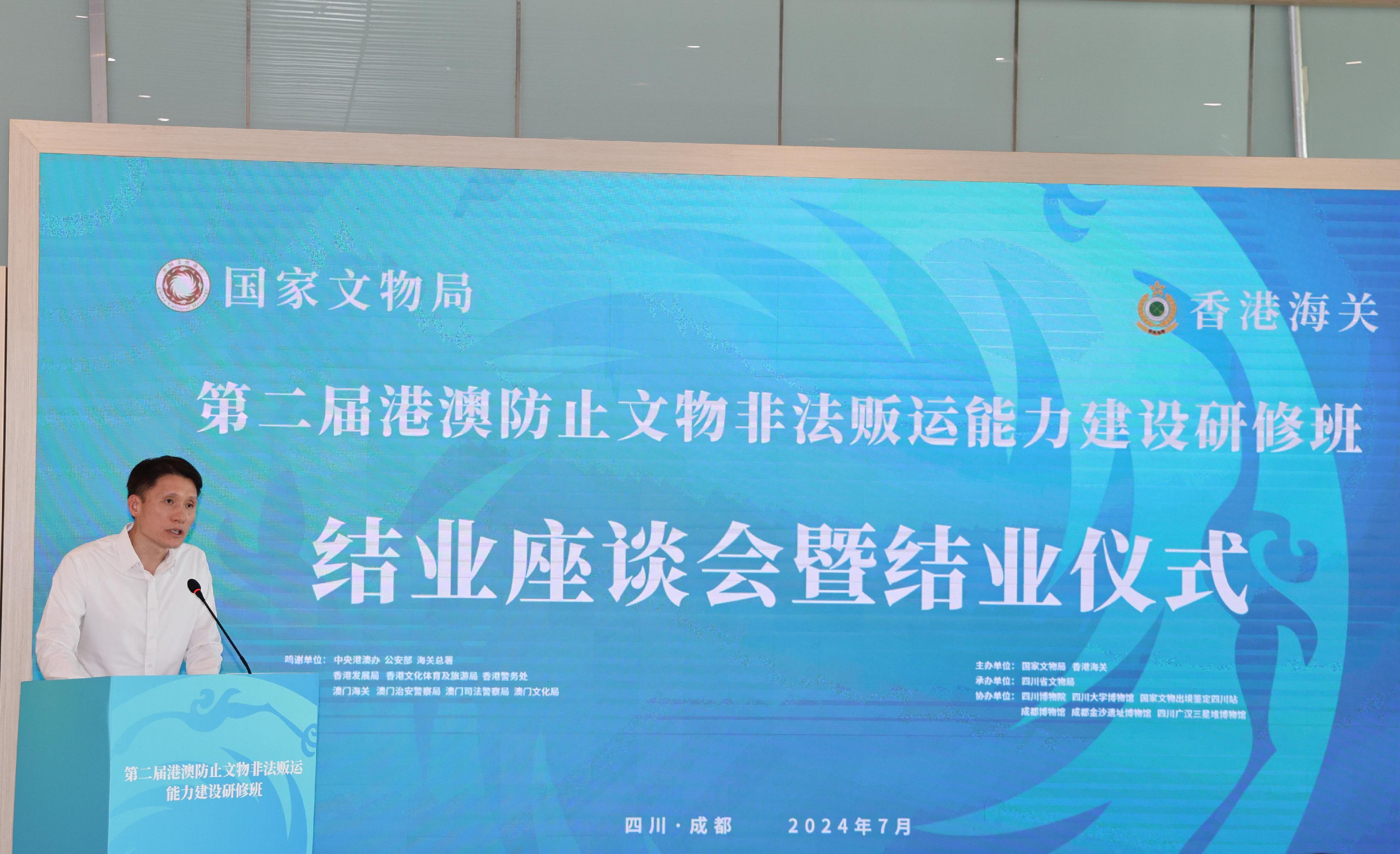 海关副关长(管制及执法)胡伟军今日(七月五日)在四川出席「第二届内地与港澳防止文物非法贩运能力建设研修班」结业典礼,并带领「Customs YES」成员参与文化交流活动。