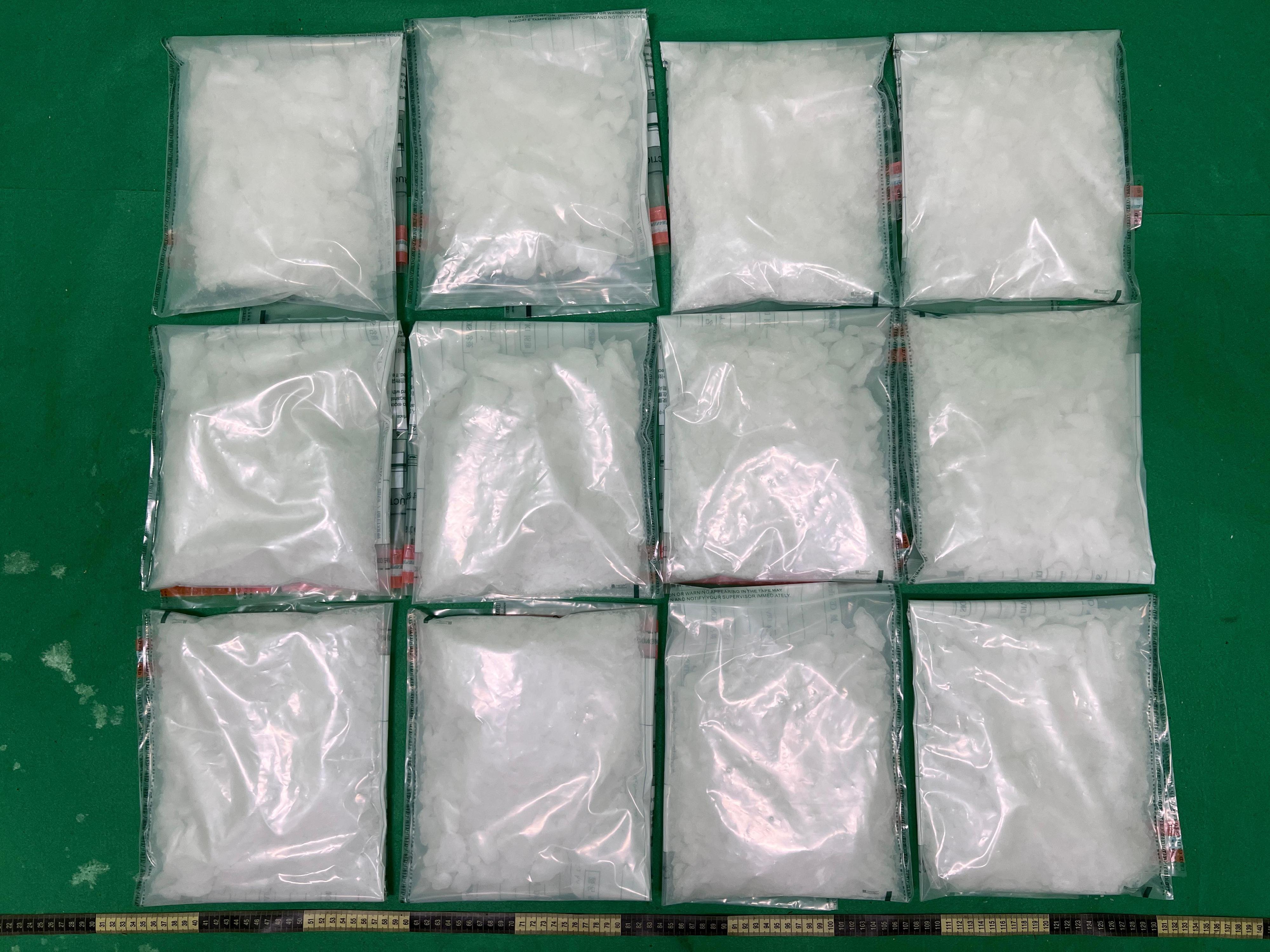 第二宗案件涉及一名二十岁今日从马来西亚吉隆坡飞抵本港的男旅客。海关人员清关期间,在其寄舱行李内的食物包装盒中检获该批怀疑冰毒,遂把他拘捕。