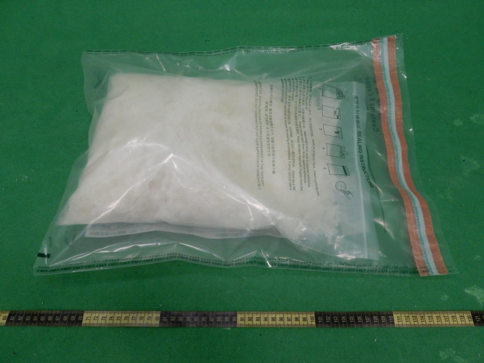 一名二十九岁女旅客昨日从马来西亚槟城飞抵本港。海关人员清关时,在其寄舱行李箱的夹层中检获该批怀疑冰毒,该名女子随即被捕。