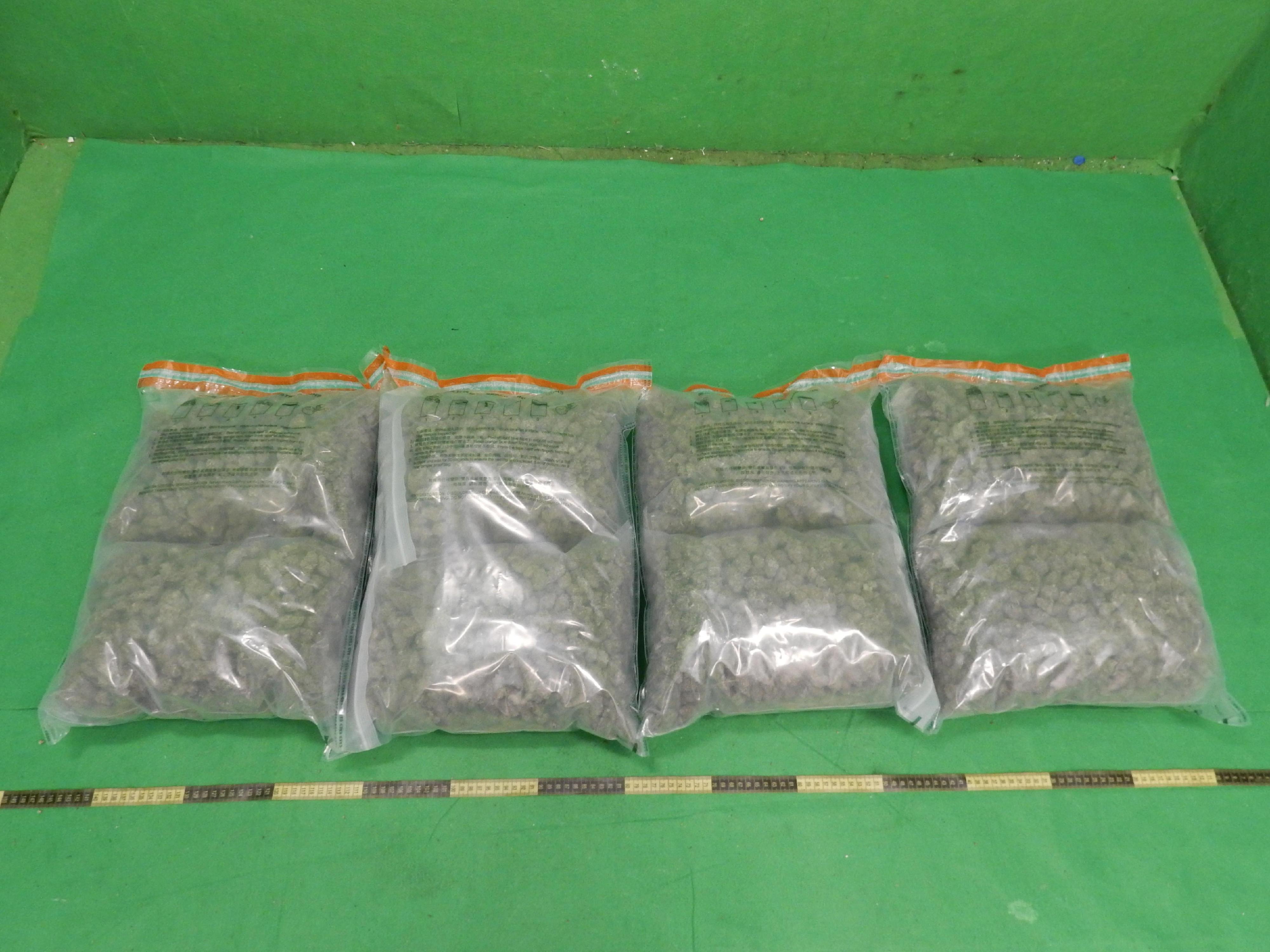 两名分别三十八岁及四十四岁的女旅客昨日从泰国曼谷飞抵本港。海关人员清关时,在二人的寄舱行李内发现共重约十公斤的怀疑大麻花,该两名人士随即被捕。