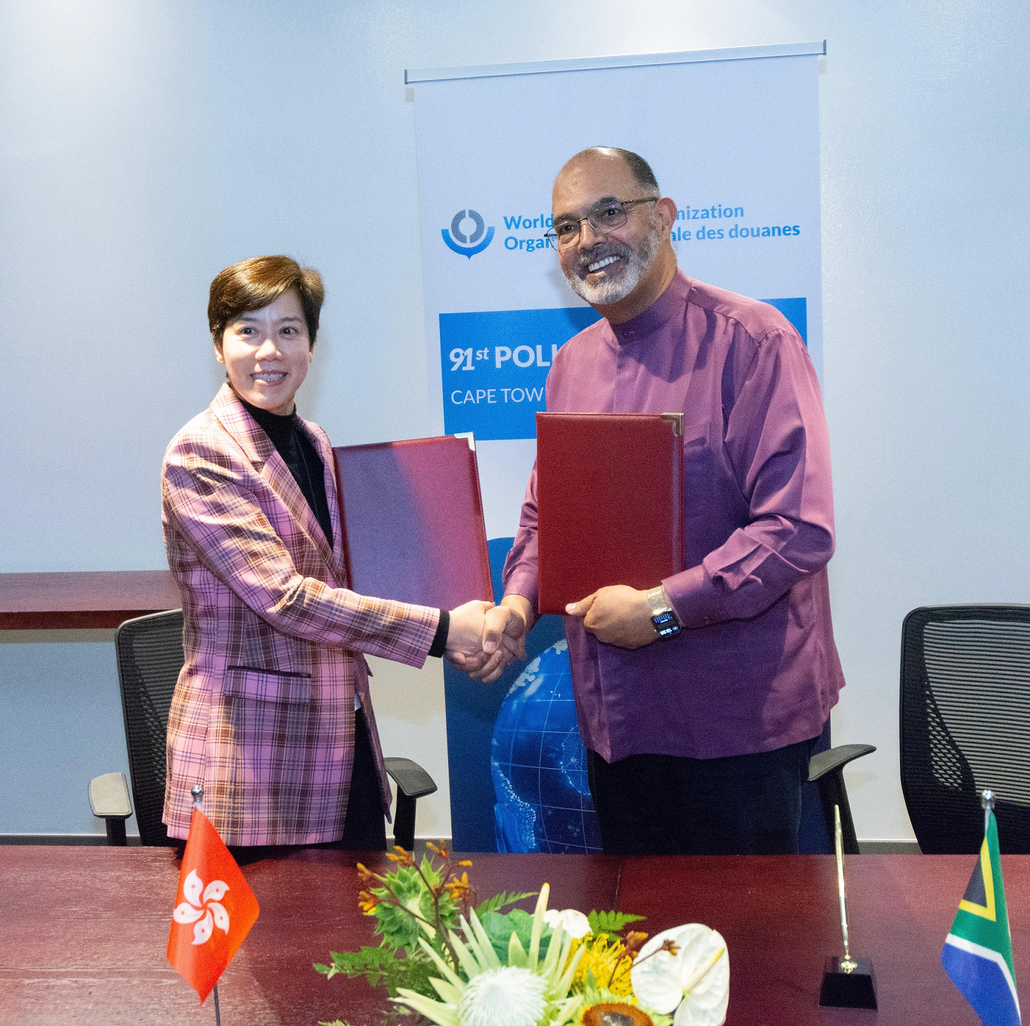 十二月三日,何珮珊与南非税务署署长Edward Kieswetter签署《认可经济营运商互认安排》,为首份与非洲地区海关签订的互认安排。此互认安排将加强两地国际货物安全,促进合法跨境货物流通,亦使香港和南非的认可经济营运商(AEO)显着受益,加强他们在国际市场的竞争力。